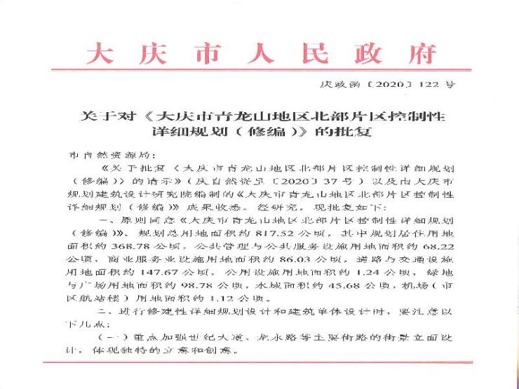本月的27日,也就是上周这个规划才得到批复。市城乡规划局通过大庆市政府网站对外公布了大庆市青龙山地区部分区控制性详细规划。